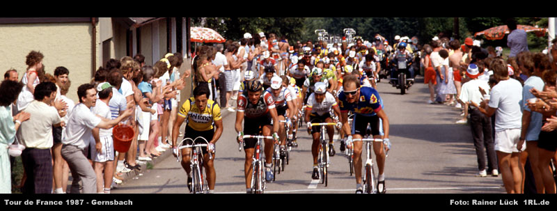 Giuseppe Saronni vom Team Del Tongo, der zweimalige Sieger des Giro d'Italia, erhält eine Extra-Erfrischung. Rechts von ihm im rot-grünen Trikot von 7-Eleven der Amerikaner Ron Kiefel.